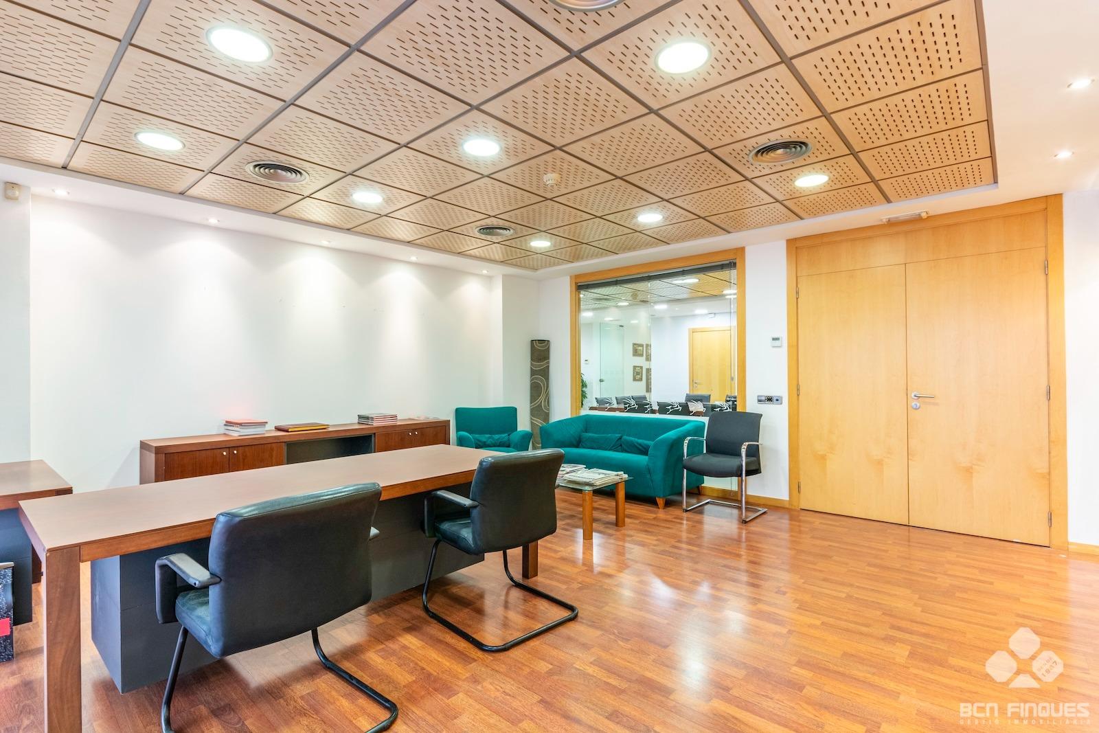 GRAN DESPACHO COMERCIAL de 1.100m2, entre las calles de Muntaner y Aribau y cercano al Hospital Clínic. ~Interiormente dividido en Planta Baja y Planta Entresuelo.~-La PLANTA BAJA tiene una superficie de 500m2, con amplia fachada exterior y se divide en amplia recepción, gran sala central de trabajo, 5 despachos independientes, aseos para señora y caballeros y zona de cocina con office. Tiene acceso directo por la calle y por el vestíbulo de la finca.~-La PLANTA ENTRESUELO tiene una superficie de 600m2, y comunicada con el local en planta baja mediante una amplia escalera interior. Se distribuye en 2 despachos de dirección con cristalera exterior que se comunican con una gran sala de reuniones con 1 aseo para señoras y caballeros, 1 despacho privado con 1 aseo, Gran sala central de trabajo, 7 despachos cerrados, y zona con aseos, office, 1 sala técnica y almacén. La planta tiene también dos puertas de acceso independiente directo por la escalera.~~ACABADOS: Muy buena conservación y acabados en general, con gran cantidad de armarios y archivos para almacenaje, divisiones de cristal, pavimento de parquet, bomba de aire frio/calor en todas las salas, despachos principales con una excelente presencia. Actualmente tiene instalado sistema de alarma.~~Muy buena ubicación, en l'Antiga Esquerra de l'Eixample, donde podemos encontrar una amplia oferta tanto en servicios como en comunicaciones en la zona. ~~PUEDE CONSULTARNOS CON LAS DISTINTAS POSIBILIDADES QUE PODEMOS OFRECERLES EN METROS Y ESPACIOS, EN FUNCIÓN DE SUS NECESIDADES. ~~Este arrendamiento está sujeto al IVA.~