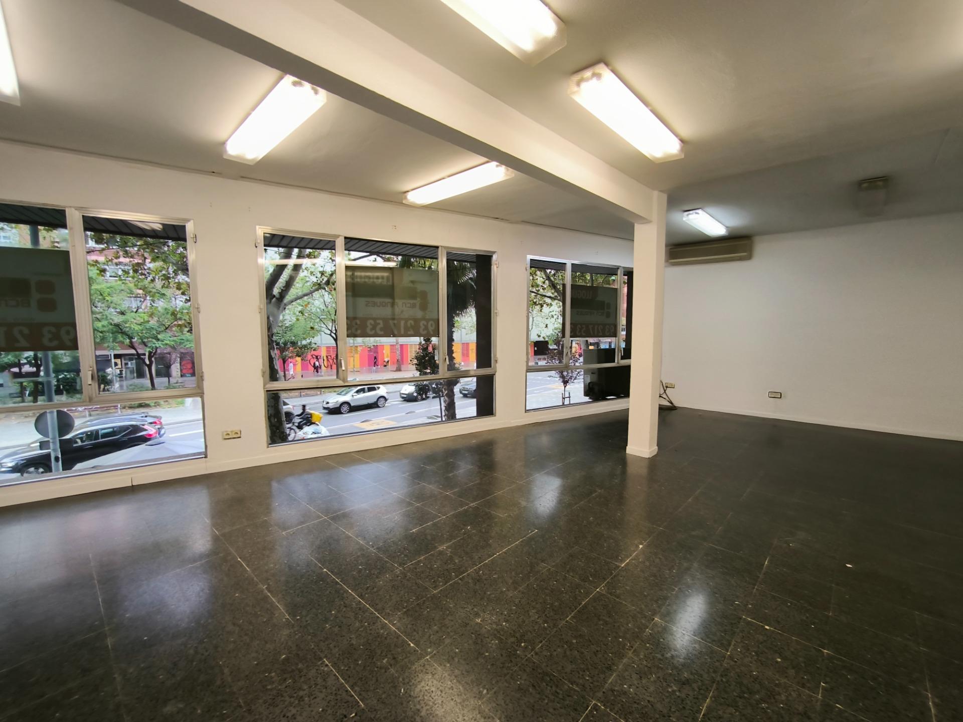 DESPACHO en la misma Avenida de Roma, junto calle Comte Borrell y en finca con una excelente conservación.~Distribuido interiormente en:~-Amplia recepción~-1 Sala principal de unos 45m, exterior a Avenida de Roma con amplios ventanales.~-1 Sala de 11m comunicada con la sala principal.~-1 aseo.~~Las divisiones son en carpintería de cristal y pladur, por lo que habría la posibilidad de hacer una nueva distribución en función de las necesidades.~~Dispone de:~Puerta de seguridad~Carpintería exterior de aluminio~Bomba de aire frio/calor~Pavimento de terrazo~Iluminación mediante fluorescentes~~El despacho está ubicado en la planta entresuelo de una finca muy bien cuidada, con el vestíbulo adaptado con rampa, y exterior con gran fachada a la misma Avenida de Roma. ~Muy buena ubicación, cercano a Sants Estació, con amplia y variada oferta tanto en servicios como en comunicaciones en la zona. ~~Este arrendamiento está sujeto al IVA.~