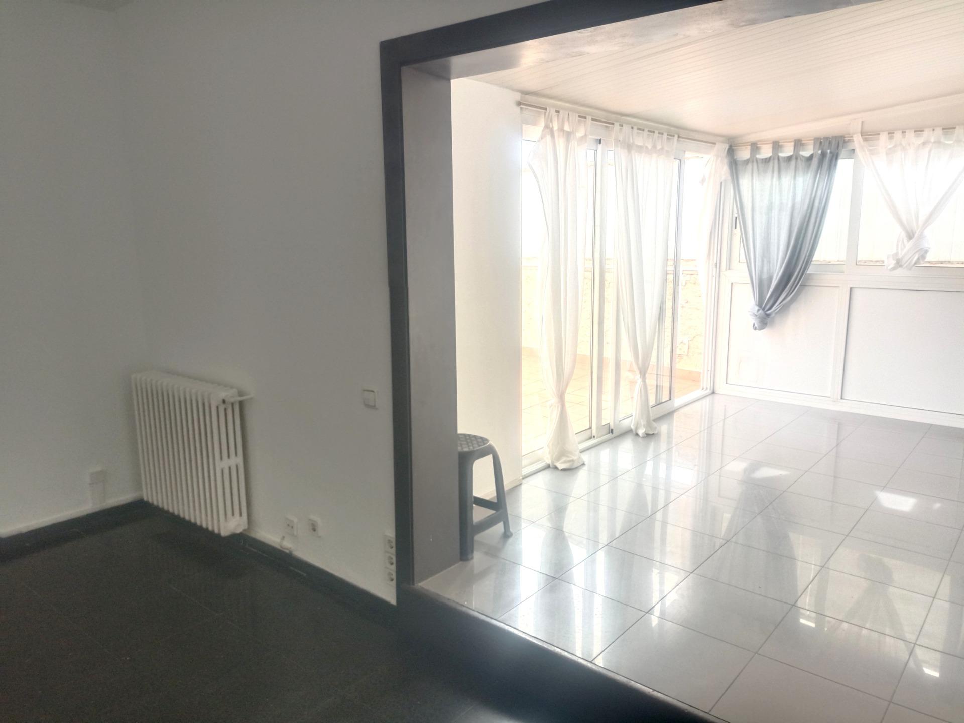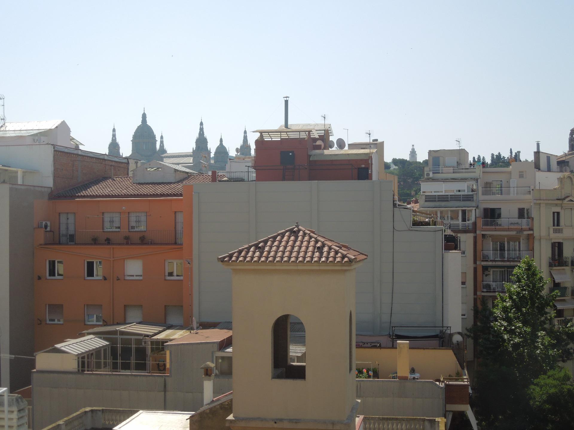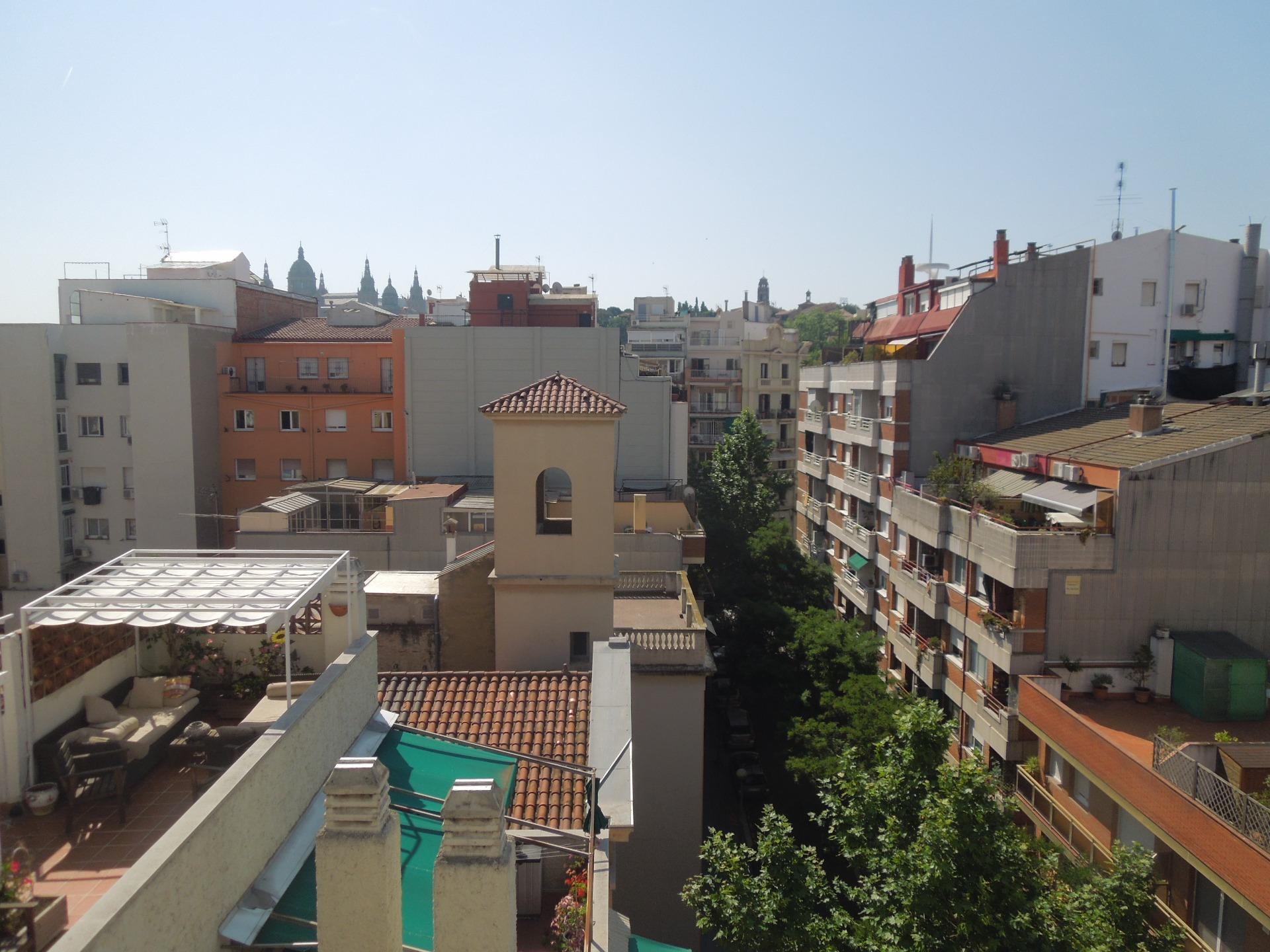En la Gran Vía de les Corts Catalanes, cercano a Plaça Espanya, se ofrece ÁTICO con gran terraza de 26m orientada a mar-tarragona. ~Distribuido interiormente en:~-Salón más Comedor, exterior a gran terraza muy soleada y con amplias vistas.~-Cocina independiente equipada con encimera, horno bajo, campana y caldera mixta.~-1 Habitación principal exterior a la terraza.~-1 Habitación mediana interior.~-1 baño completo con bañera. ~~Dispone de: ~Carpintería exterior de pvc e interior en madera~Armarios empotrados en ambas habitaciones~Calefacción individual a gas.~~La vivienda es exterior con varias orientaciones. Muy tranquila y soleada. ~~Muy buena ubicación, cercana a Plaça Espanya y Ciudad Judicial, con numerosos y variados servicios y comunicaciones en la zona.~~Cédula de Habitabilidad número 03724522~~La propiedad tiene la consideración de pequeño tenedor~Renta anterior contrato en los últimos cinco años 1.232,35€~Índice de referencia estatal: renta entre 637,94€ y 853,70€~~