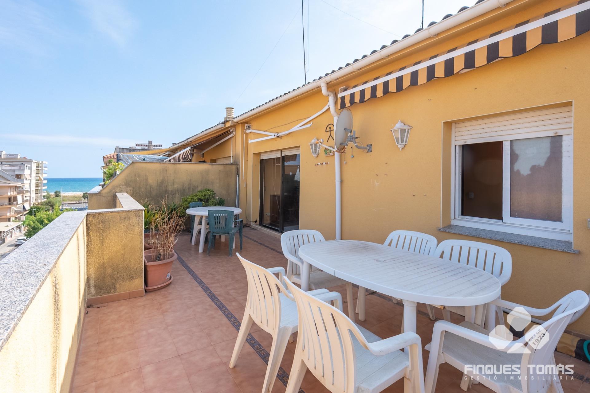 Presentamos este espectacular ático en venta totalmente exterior, con gran terraza privada y vistas laterales al mar, ubicado a tan solo 150 metros de la playa en Segur de Calafell, Tarragona. Gracias a sus características y ubicación privilegiada, es una excelente oportunidad tanto como residencia habitual, segunda vivienda o inversión patrimonial, con la combinación perfecta de luz natural, amplitud y privacidad.~~La vivienda cuenta con una distribución cómoda y bien pensada; separa de forma natural las zonas de día y de noche, ofreciendo funcionalidad y confort en cada estancia. Al entrar, encontramos un bonito recibidor que conecta con un amplio salón comedor con acceso directo a una terraza exterior tipo solárium. Desde el salón se accede a la cocina independiente totalmente equipada y a la zona de noche, que consta de dos dormitorios dobles y una habitación individual que puede utilizarse también como despacho o vestidor. El dormitorio principal cuenta con armarios empotrados, mientras que el otro dormitorio doble tiene salida a una segunda terraza exterior con galería, perfecta para utilizar como trastero o zona de almacenaje extra. Dispone de un baño completo con plato de ducha y un aseo adicional, ambos con ventana, lo que aporta mayor comodidad para toda la familia o visitas. Todas las estancias de la vivienda son orientadas al exterior, lo que garantiza una excelente entrada de luz y ventilación natural durante todo el día.~~Una de las características más destacadas de este ático es su gran terraza exterior con vistas laterales al mar, perfecta para crear una zona chill-out, comedor exterior o instalar tumbonas. Un espacio ideal para relajarte, tomar el sol, organizar comidas al aire libre o simplemente disfrutar de la brisa marina. Se trata de un gran valor añadido en zonas costeras que aporta privacidad y comodidad, muy demandado para alquiler. Este ático se encuentra en una cuarta planta de una finca con ascensor y cuenta con plaza de parking privada incluida en el precio. Situado a solo una calle de la playa y el Paseo Marítimo, en un entorno tranquilo y bien comunicado, cerca de todos los servicios esenciales –farmacias, supermercados, comercios y restauración–, y a 7 minutos a pie de la estación de tren.~~Contáctanos para más información y descubre esta propiedad en exclusiva con nosotros.~