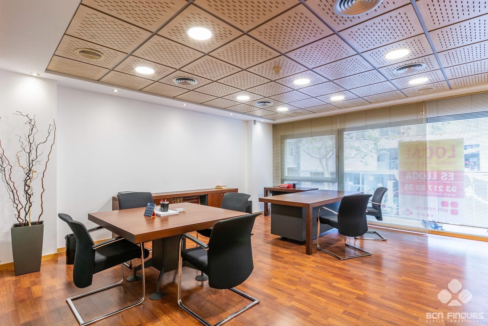 GRAN DESPACHO COMERCIAL de 1.100m2, entre las calles de Muntaner y Aribau y cercano al Hospital Clínic. ~Interiormente dividido en Planta Baja y Planta Entresuelo.~-La PLANTA BAJA tiene una superficie de 500m2, con amplia fachada exterior y se divide en amplia recepción, gran sala central de trabajo, 5 despachos independientes, aseos para señora y caballeros y zona de cocina con office. Tiene acceso directo por la calle y por el vestíbulo de la finca.~-La PLANTA ENTRESUELO tiene una superficie de 600m2, y comunicada con el local en planta baja mediante una amplia escalera interior. Se distribuye en 2 despachos de dirección con cristalera exterior que se comunican con una gran sala de reuniones con 1 aseo para señoras y caballeros, 1 despacho privado con 1 aseo, Gran sala central de trabajo, 7 despachos cerrados, y zona con aseos, office, 1 sala técnica y almacén. La planta tiene también dos puertas de acceso independiente directo por la escalera.~~ACABADOS: Muy buena conservación y acabados en general, con gran cantidad de armarios y archivos para almacenaje, divisiones de cristal, pavimento de parquet, bomba de aire frio/calor en todas las salas, despachos principales con una excelente presencia. Actualmente tiene instalado sistema de alarma.~~Muy buena ubicación, en l'Antiga Esquerra de l'Eixample, donde podemos encontrar una amplia oferta tanto en servicios como en comunicaciones en la zona. ~~PUEDE CONSULTARNOS CON LAS DISTINTAS POSIBILIDADES QUE PODEMOS OFRECERLES EN METROS Y ESPACIOS, EN FUNCIÓN DE SUS NECESIDADES. ~~Este arrendamiento está sujeto al IVA.~