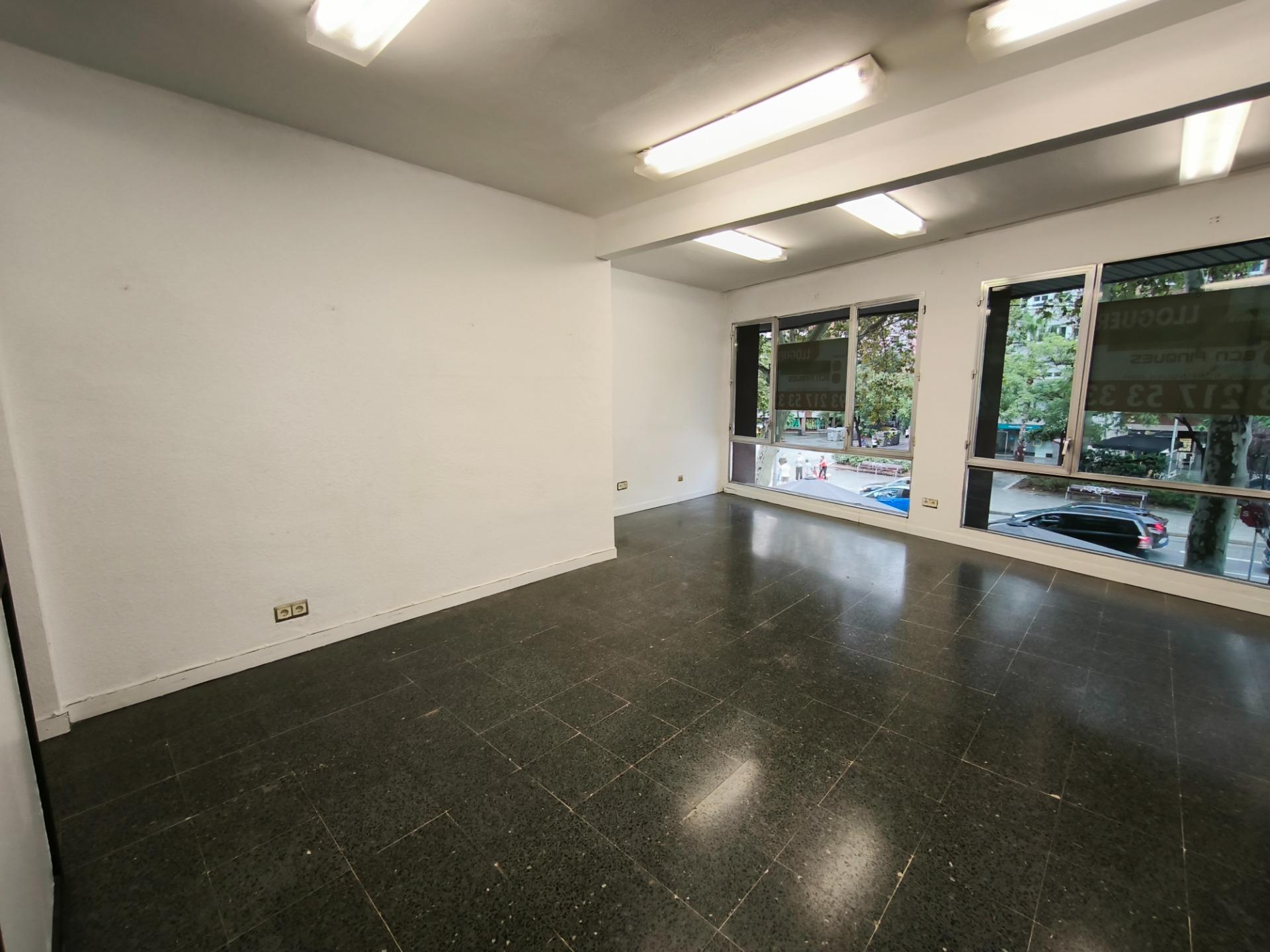 DESPACHO en la misma Avenida de Roma, junto calle Comte Borrell y en finca con una excelente conservación.~Distribuido interiormente en:~-Amplia recepción~-1 Sala principal de unos 45m, exterior a Avenida de Roma con amplios ventanales.~-1 Sala de 11m comunicada con la sala principal.~-1 aseo.~~Las divisiones son en carpintería de cristal y pladur, por lo que habría la posibilidad de hacer una nueva distribución en función de las necesidades.~~Dispone de:~Puerta de seguridad~Carpintería exterior de aluminio~Bomba de aire frio/calor~Pavimento de terrazo~Iluminación mediante fluorescentes~~El despacho está ubicado en la planta entresuelo de una finca muy bien cuidada, con el vestíbulo adaptado con rampa, y exterior con gran fachada a la misma Avenida de Roma. ~Muy buena ubicación, cercano a Sants Estació, con amplia y variada oferta tanto en servicios como en comunicaciones en la zona. ~~Este arrendamiento está sujeto al IVA.~