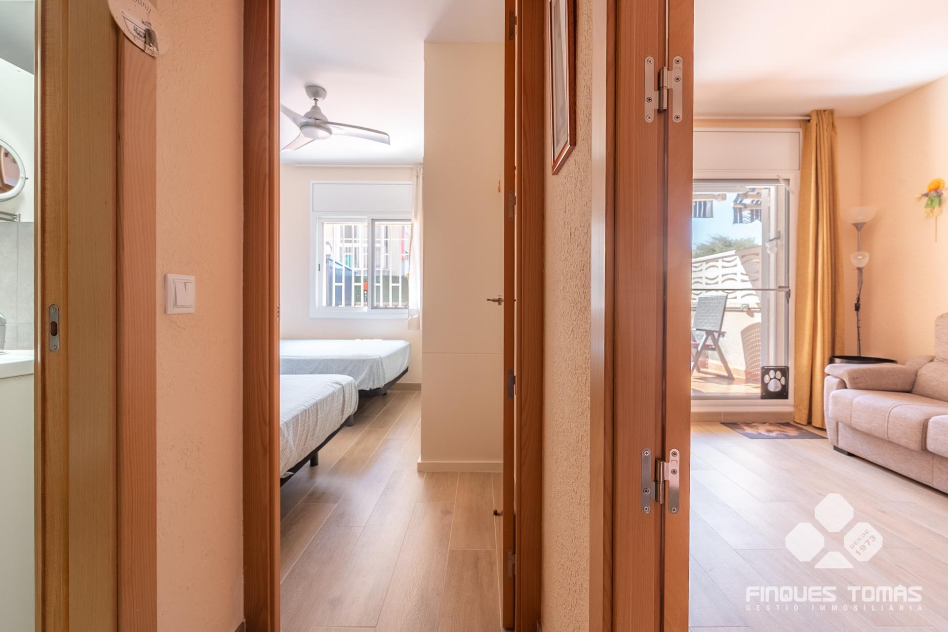 Preciosa planta baja semireformada y totalmente exterior, con gran terraza privada en Segur de Calafell, ubicada en una tranquila zona residencial y a menos de 10 minutos a pie de la playa. Una propiedad que combina confort, funcionalidad y espacios exteriores únicos, ideal para quienes desean disfrutar del entorno mediterráneo.~~Al entrar, nos recibe un luminoso salón comedor con acceso directo a la terraza privada exterior de unos 50 m², uno de los grandes atractivos de esta vivienda. Se trata de una terraza muy amplia, perfecta para crear una zona chillout, un comedor exterior o colocar tumbonas para tomar el sol. Además, cuenta con toldos extensibles para los días más soleados y un práctico trastero de metal en una esquina, sin restar espacio útil. Está equipada con suelos de gres cerámico en tonos cálidos, fáciles de mantener e ideales para el uso exterior diario. El recibidor comunica también con la cocina independiente, completamente equipada, con una distribución práctica y ventilación natural. Desde el salón se accede a la zona de noche, que consta de dos dormitorios dobles y un cuarto de baño completo con ducha. ?~~La vivienda está semireformada, con suelos de gres porcelánico imitación madera y acabados de alta calidad. Cuenta con carpintería exterior de aluminio con doble acristalamiento tipo Climalit y está equipada con aire acondicionado por splits. Todas las estancias son exteriores, lo que garantiza una excelente entrada de luz natural y ventilación durante todo el día. Situada en un entorno tranquilo y bien comunicado, cerca de todos los servicios esenciales –farmacias, supermercados, comercios y restauración–, y a solo 5 minutos a pie de la estación de tren.~~??Una planta baja única y exclusiva que, por sus características y su ubicación inmejorable, representa una excelente oportunidad como primera o segunda residencia. Contáctanos para más información o para realizar una visita privada.~