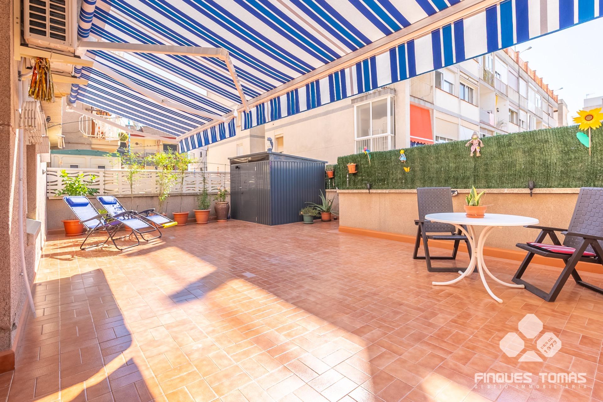 Preciosa planta baja semireformada y totalmente exterior, con gran terraza privada en Segur de Calafell, ubicada en una tranquila zona residencial y a menos de 10 minutos a pie de la playa. Una propiedad que combina confort, funcionalidad y espacios exteriores únicos, ideal para quienes desean disfrutar del entorno mediterráneo.~~Al entrar, nos recibe un luminoso salón comedor con acceso directo a la terraza privada exterior de unos 50 m², uno de los grandes atractivos de esta vivienda. Se trata de una terraza muy amplia, perfecta para crear una zona chillout, un comedor exterior o colocar tumbonas para tomar el sol. Además, cuenta con toldos extensibles para los días más soleados y un práctico trastero de metal en una esquina, sin restar espacio útil. Está equipada con suelos de gres cerámico en tonos cálidos, fáciles de mantener e ideales para el uso exterior diario. El recibidor comunica también con la cocina independiente, completamente equipada, con una distribución práctica y ventilación natural. Desde el salón se accede a la zona de noche, que consta de dos dormitorios dobles y un cuarto de baño completo con ducha. ?~~La vivienda está semireformada, con suelos de gres porcelánico imitación madera y acabados de alta calidad. Cuenta con carpintería exterior de aluminio con doble acristalamiento tipo Climalit y está equipada con aire acondicionado por splits. Todas las estancias son exteriores, lo que garantiza una excelente entrada de luz natural y ventilación durante todo el día. Situada en un entorno tranquilo y bien comunicado, cerca de todos los servicios esenciales –farmacias, supermercados, comercios y restauración–, y a solo 5 minutos a pie de la estación de tren.~~??Una planta baja única y exclusiva que, por sus características y su ubicación inmejorable, representa una excelente oportunidad como primera o segunda residencia. Contáctanos para más información o para realizar una visita privada.~
